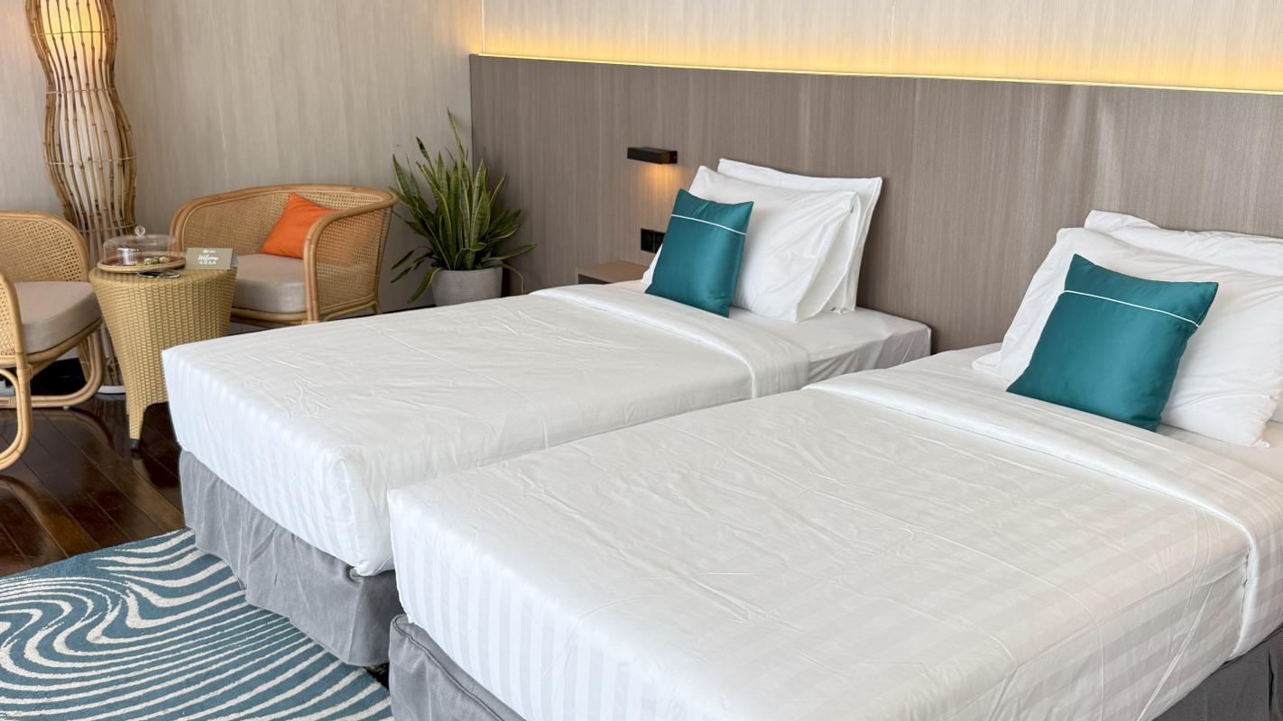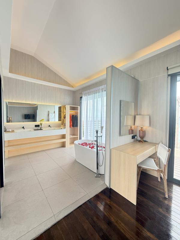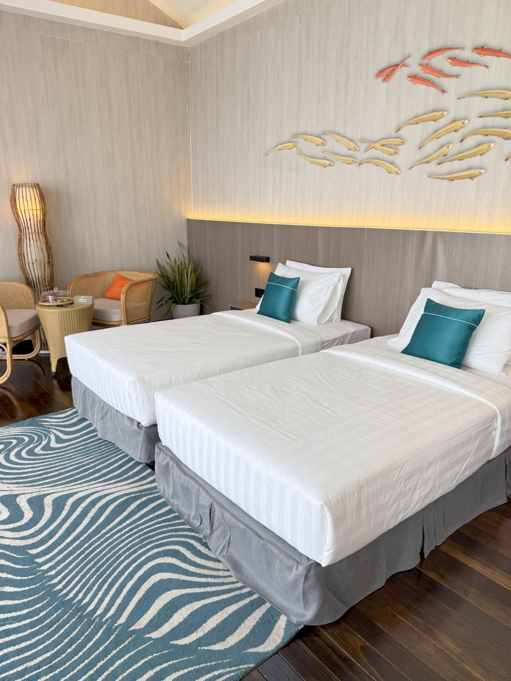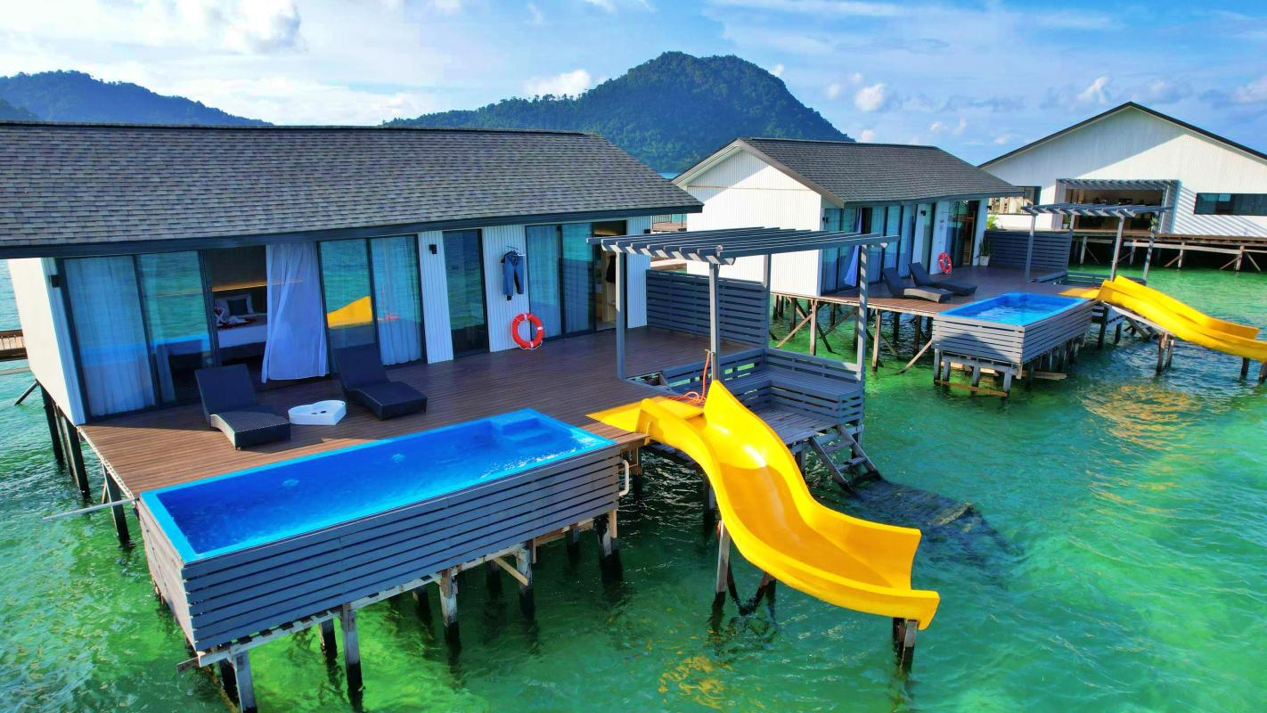 1 Unit Super King Bed OR 2 Units Super Single Bed + 1 Bathroom with Bathtub + Private Balcony + Private Swimming Pool with Water Slide + Staircase Access to Seawater