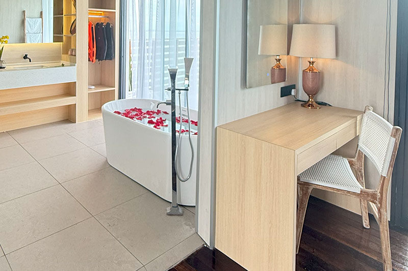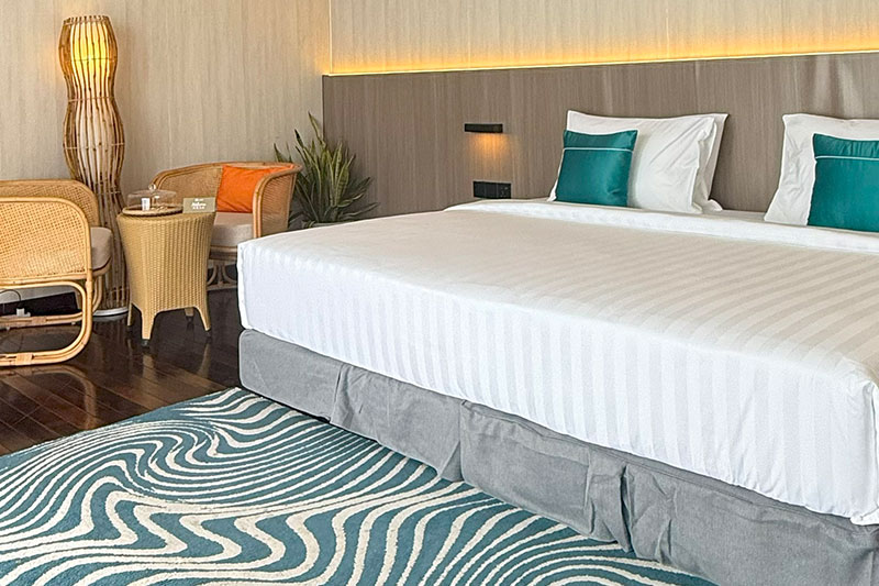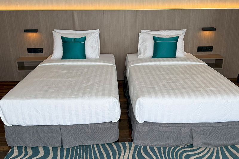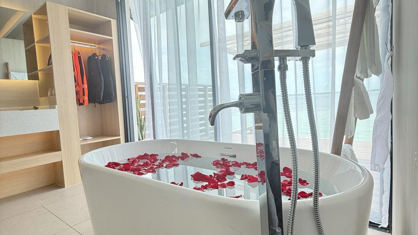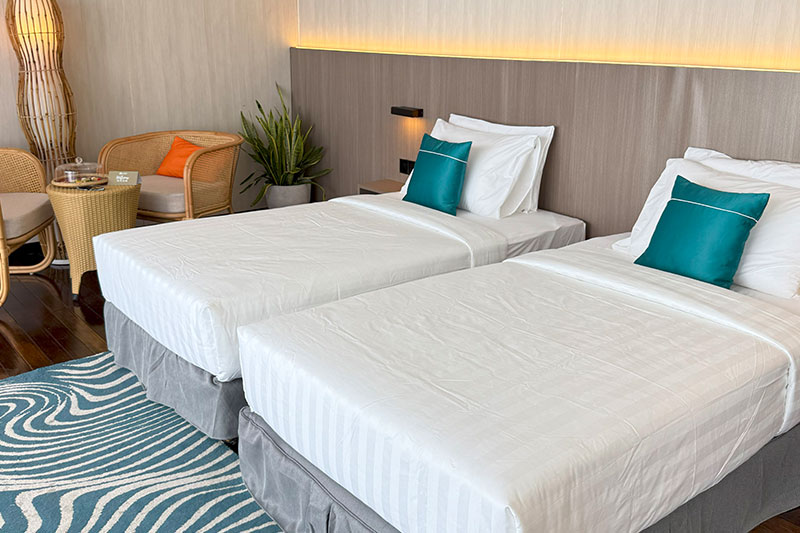 1 Unit Super King Bed OR 2 Units Super Single Bed + 1 Bathroom with Bathtub + Private Balcony + Private Swimming Pool with Water Slide + Staircase Access to Seawater