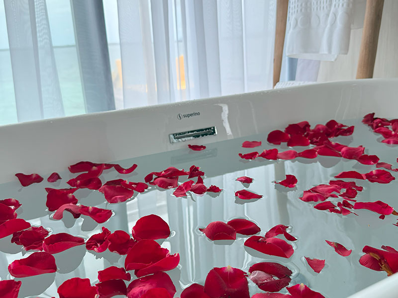1 Unit Super King Bed OR 2 Units Super Single Bed + 1 Bathroom with Bathtub + Private Balcony + Private Swimming Pool 16' x 6' (Fresh Water) with Water Slide + Staircase Access to Seawater